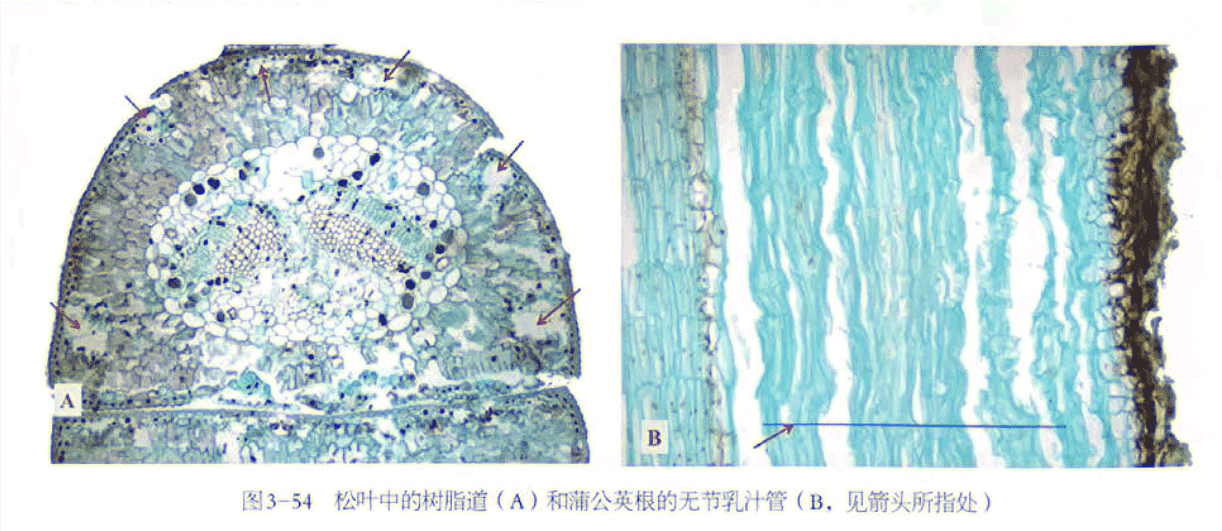 • 分泌结构外分泌结构(将分泌物排到植物体外,腺毛、蜜腺、盐腺);内分泌结构(分泌细胞、分泌腔溶生型——柑橘;裂生型——松柏类木质部的树脂道,漆树韧皮部的漆汁道)、乳汁管(无节一个细胞发育而来eg.桑科、夹竹桃科、菊科、大戟属;有节许多圆柱形细胞连接而来eg.菊科、罂粟科、旋花科、番木瓜科))