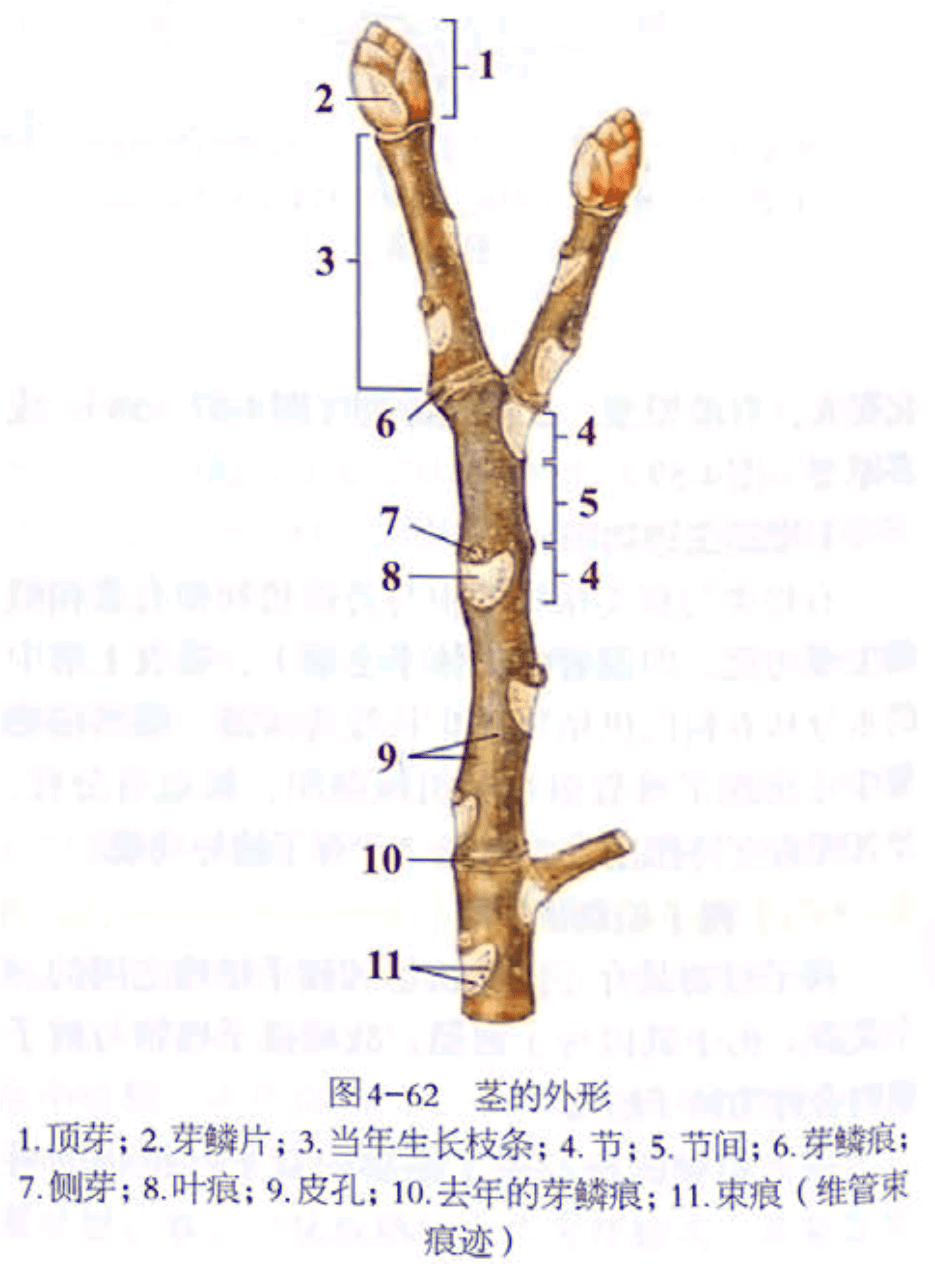 • 枝条——着生叶和芽的茎(节间长短——长枝(营养枝)、短枝(果枝))