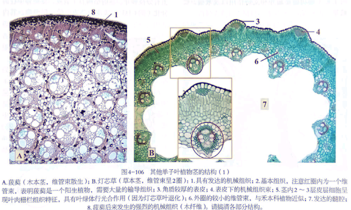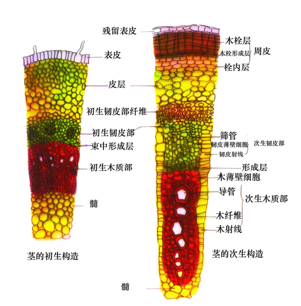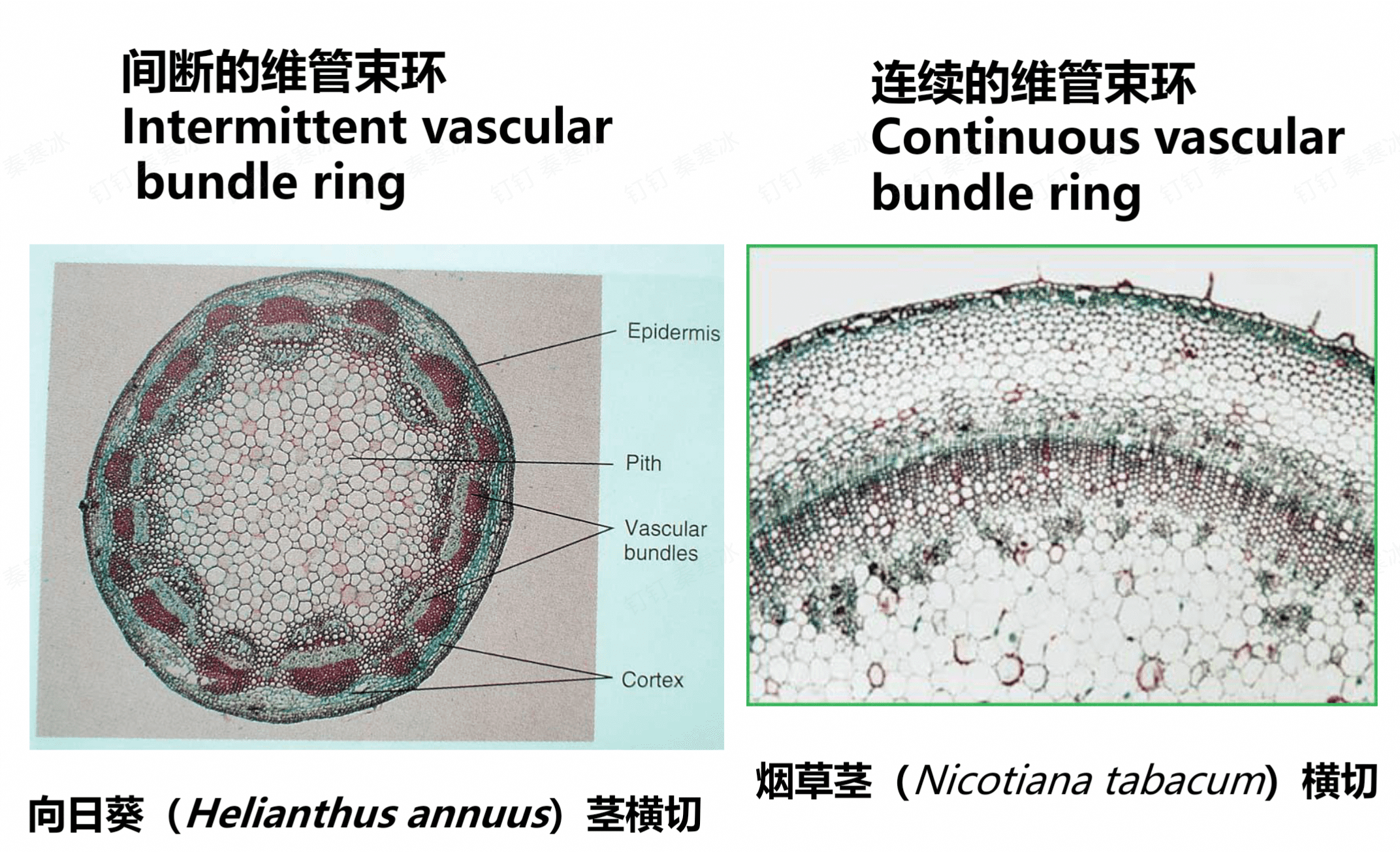• ⚠️大多单子叶植物茎无形成层,无次生生长。少数也能产生维管形成层。