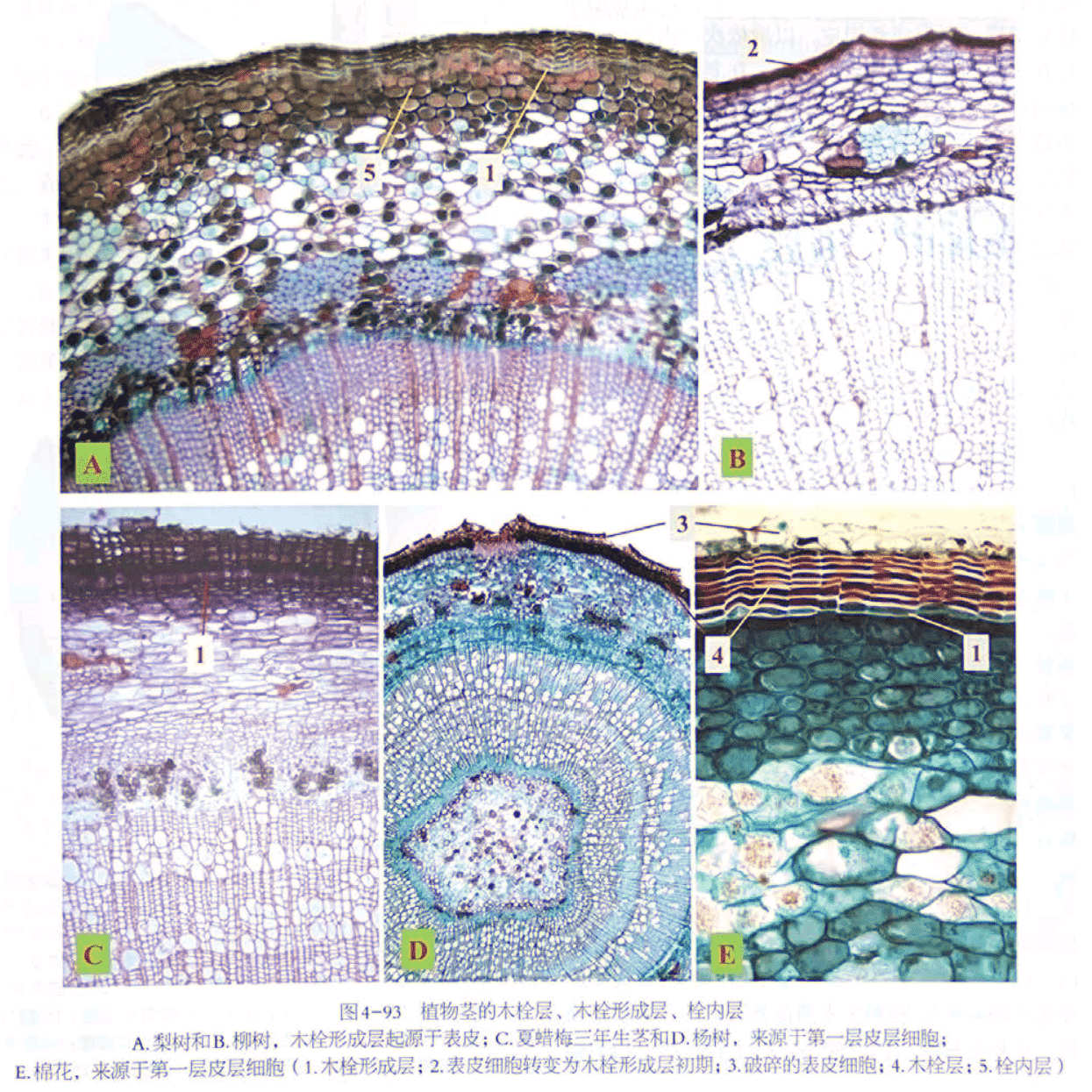 • 木栓形成层的发生 多数由表皮内方的第一层皮层细胞转变而来。