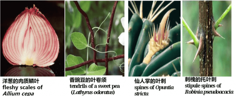 • 同源器官:来源相同,功能不同的变态器官。eg.块茎&茎卷须