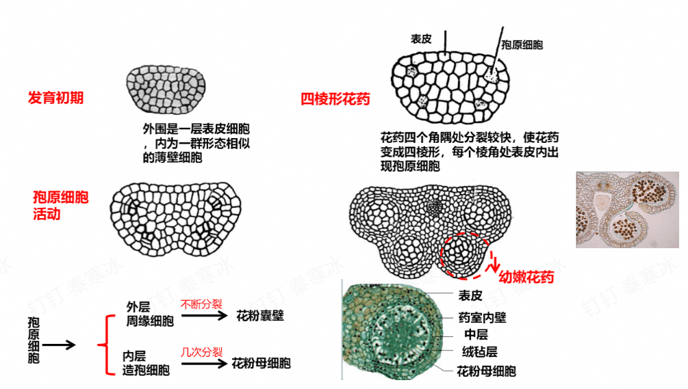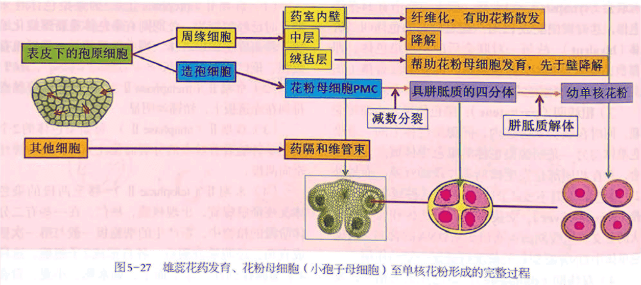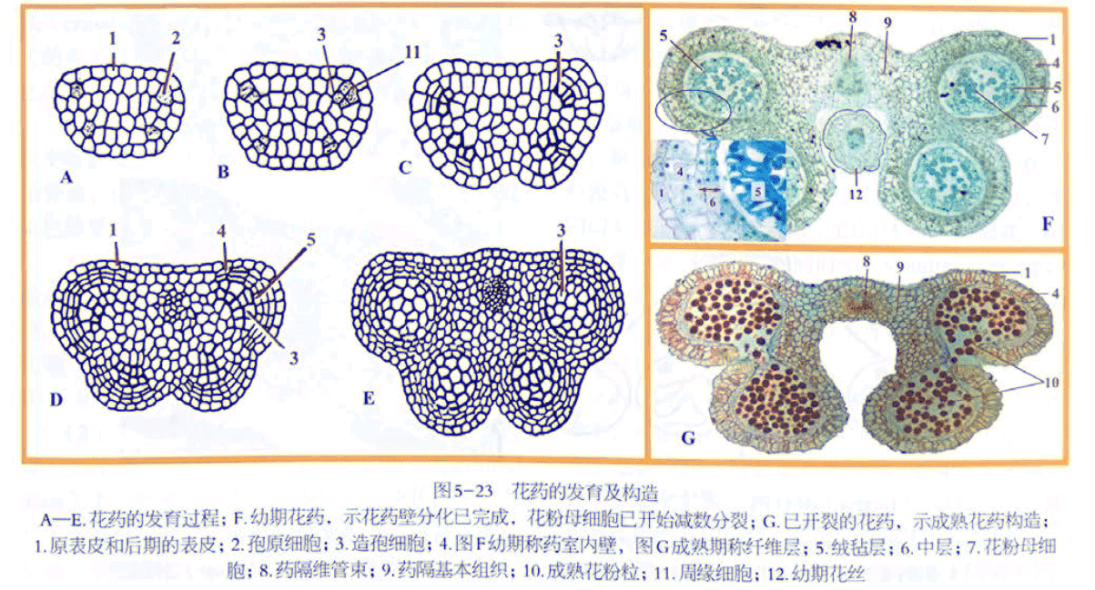 • ⚠️成熟花药中层与绒毡层均解体消失,最后只剩表皮和药室内壁