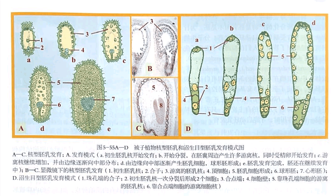 • 细胞型:每次核分裂都有壁生成,无游离核时期,胚乳始终是多细胞结构
