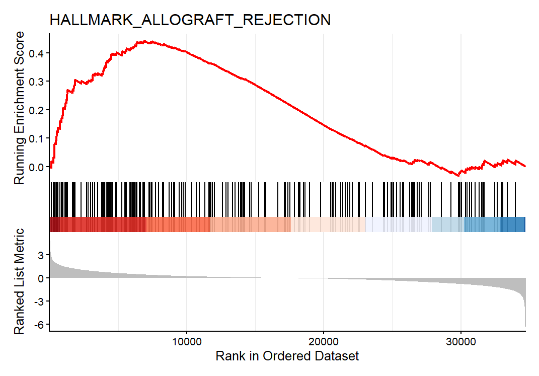 p <- gseaplot2(GSEA,geneSetID = 'HALLMARK_ALLOGRAFT_REJECTION',title = 'HALLMARK_ALLOGRAFT_REJECTION',color = 'red')