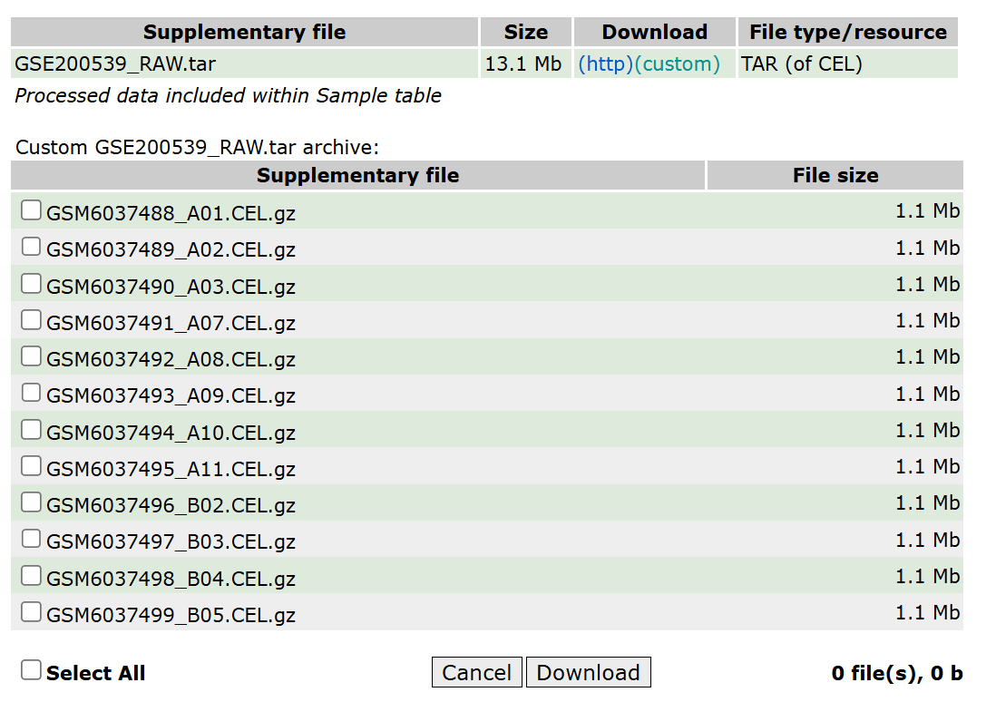 • Supplementary file:作者上传的补充材料,未经过GEO统一处理的文件,是作者对原数据的个性化解读加工。